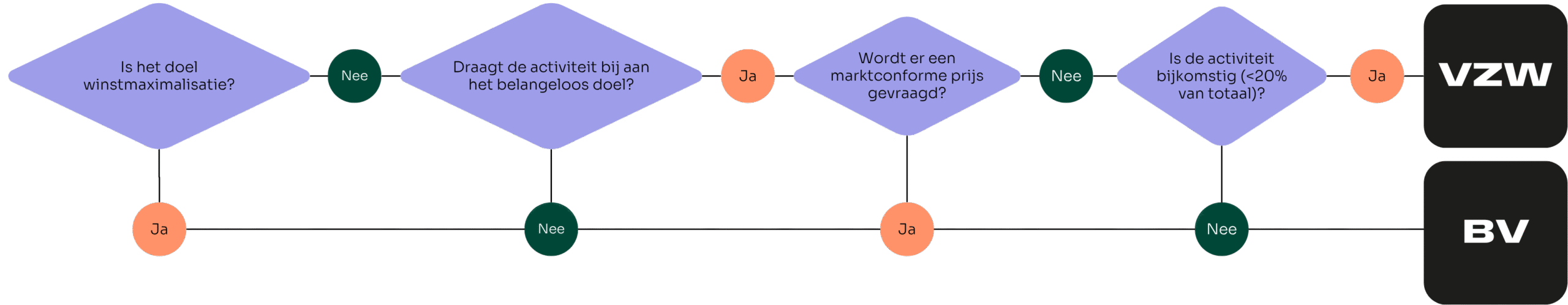 Om te bepalen welke activiteiten onder de VZW en welke onder de BV vallen, kun je een eenvoudig schema volgen: